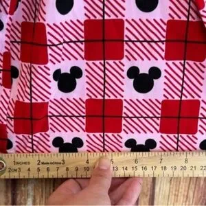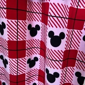 -Pattern: Red plaid with black Mickey Mouse print and pink and black top