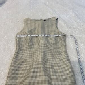The J.G. Hook VTG Sage Green Plaid Dress is a vintage-inspired piece perfect for a casual occasion. Made of silk satin, this midi-length dress features a round neck, sleeveless design, and fit & flare style. The green plaid pattern adds a touch of charm, while the sheer accents give it a whimsical feel. With a size 12 fit and zip closure, this dress is ideal for women looking for a cottage-core or ballet-inspired look. Perfect for summer and spring, this designer piece is a lovely addition to any wardrobe.