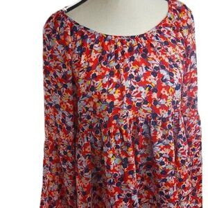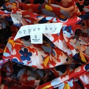 Copper Key Womens Size S Blouse Red Multicolor Floral Long Sleeve Boho Peasant
