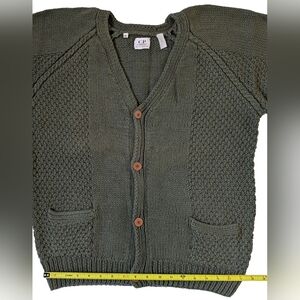 Vintage Massimo Osti CP Company Olive Green Chunky Cable Knit Men's Cardigan Med
