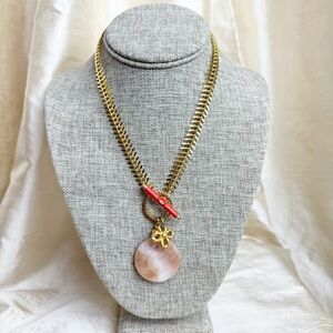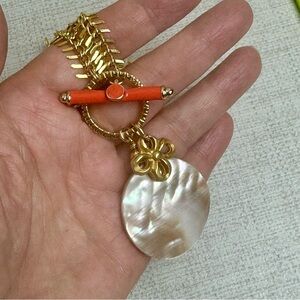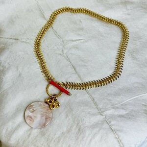 Upcycled one of a kind gold tone necklace Mother of Pearl Pendant