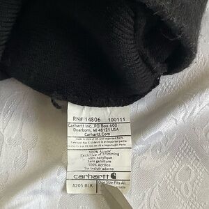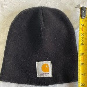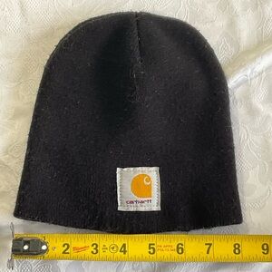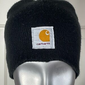 This is a solid black Carhartt beanie made of acrylic knit, suitable for workwear. It is adult one size and lightweight, perfect for all seasons. The beanie is not vintage, signed, or personalized. It is from the brand Carhartt and made in China. This beanie is a classic and versatile accessory for men's outfits.