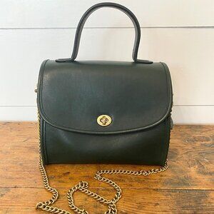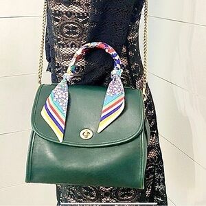 Coach Vintage Manor Top Handle Turnlock Satchel in Bottle Green Leather #9977
