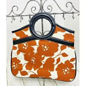 Stylish Old Navy clutch with bold floral design. Features circular handle. Perfect for any occasion.
