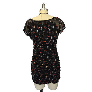 Vintage Y2K Black Floral Milkmaid Mini Dress Size S Mesh Goth 90s Style Grunge