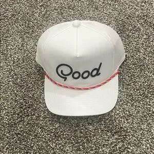 Sold out white Good Good Golf Trucker cap featuring a black 'Good' logo and a red braided accent. New with tags! Feel free to ask questions