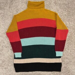 Farm Rio X Anthropologie Striped Turtleneck Tunic Sweater Metallic Flecks Large