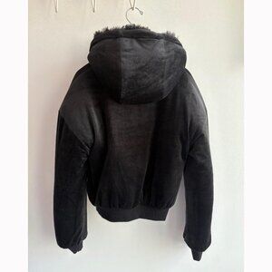 Blanc Noir Luxe Reversible Faux Shearling Hooded Black Jacket