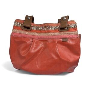 Fossil Key Per Orange Canvas Crossbody Bag Floral Trim Adjustable Strap