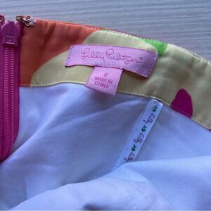 Floral pattern Lily Pulitzer strapless dress with zipper closure and ruffle bottom in good used condition