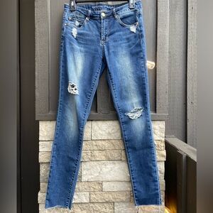 Trendy distressed skinny jeans. Comfortable and stylish. Perfect for casual wear.