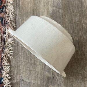 Gently loved large ceramic bowl in a speckled cream color + ceramic handles. The perfect addition to your bohemian home