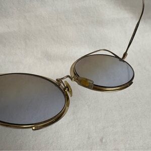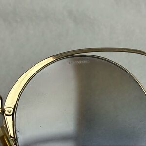 dusty from being stored, scratches on metal and lenses, plastic parts on arms look dull from use, hasn't been worn in a few years, NO CASE, left arm gold part is loose, nosepad is yellowed, white marks on plastic part on arm, dirt marks