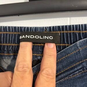 Bandolino denim jogger pants in a classic blue wash. These pants feature a comfortable elastic waistband with an adjustable drawstring and convenient front patch pockets. The relaxed fit and casual styling make them perfect for everyday wear or a relaxed weekend outing.