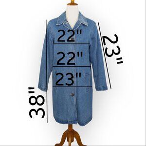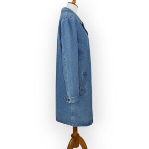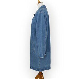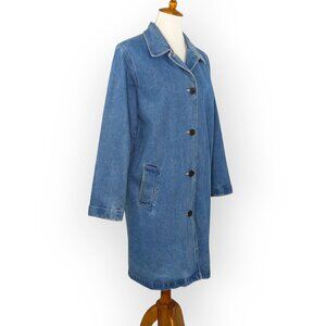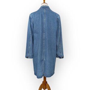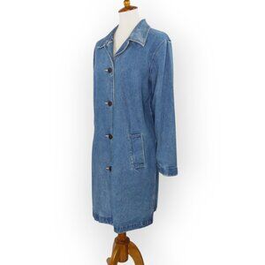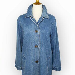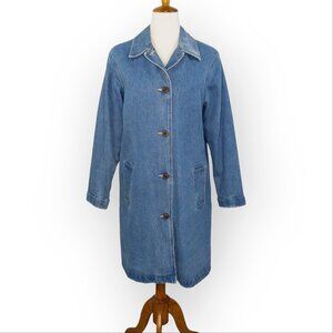 Denim & Co Long Blue Denim Jacket Chore Barn Duster Size Medium Button Front