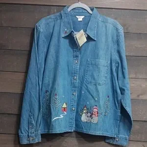 Christopher & Banks Blue Denim Shirt with Embroidery