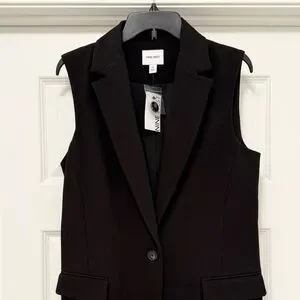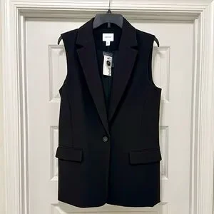 Chic black sleeveless vest by Nine West. Single button closure. Ideal for layering. Adds elegance to any look.