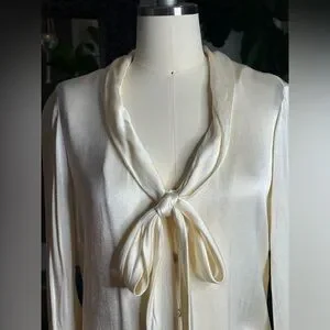Vintage 1980s Cream Silk Bow Blouse