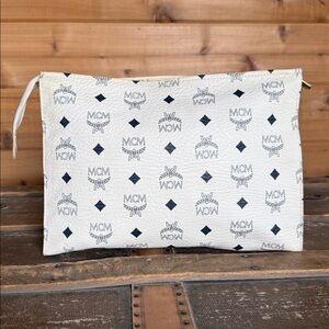 MCM Visetos White Monogram Leather Clutch