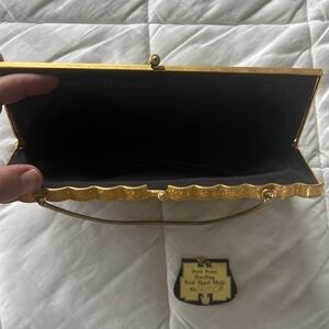 Vintage Petit Point Handmade Floral Tapestry Clutch with Gold Chain
