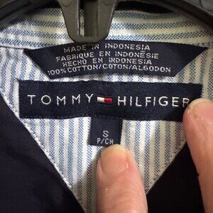 Tommy Hilfiger Men's Button Down Shirt | Navy Blue Oxford Check | Classic Preppy
