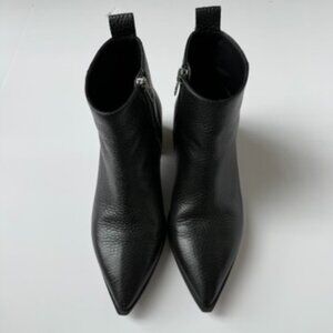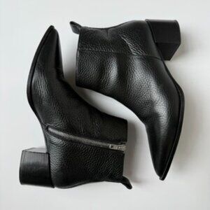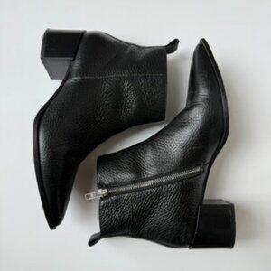 Everlane The Boss Boot in black pebbled leather, size 7. Handcrafted in Italy from premium Tuscan leather with a pointed toe, walkable 1.75" block heel, and side zipper for easy wear. Timeless, minimalist, and perfect for work, denim, or elevated everyday style. Excellent used condition. Ships same or next day.