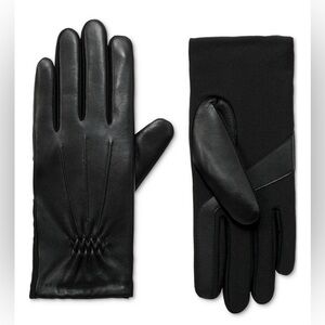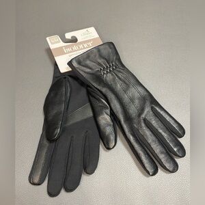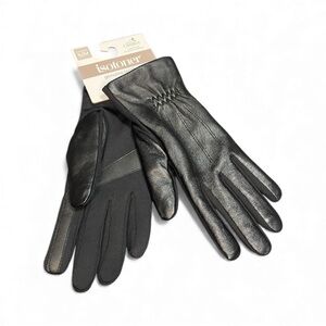 NWT Isotoner Black Leather Gloves with Stitch Detail