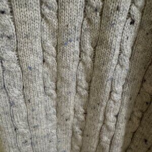 This beautiful Talbots sweater is a classic cozy piece, perfect for layering during the cooler months! Worn only once, it is in excellent, like-new condition. The gray base is accented with charming blue speckled flecks (known as Donegal or Neps knit), adding rich texture and depth.