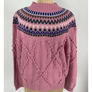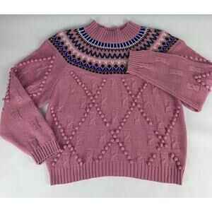 Vintage Cabin Creek Size Medium Fair Isle Crew Neck Sweater Pom Pom Sweater