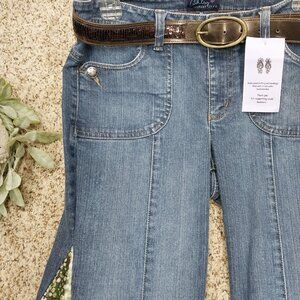 3773 Size 10 Upcycled Ashley Judd Bleach Dyed Brown And Green Bell-Bottoms.