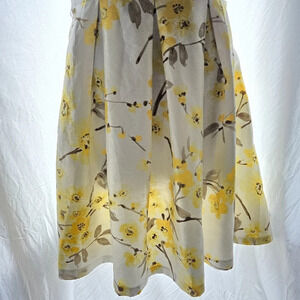 Happy tea length sunshine dress with pretty yellow flowers all over, zip closure and stylish collar. Modern and very elegant.
