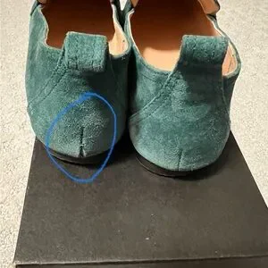 Gently worn. Some wear to heels and a small rip at the back of the left pair( see last photos), otherwise still in great condition.