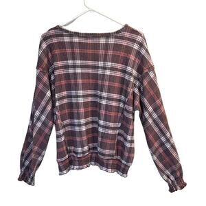 EST. 1946 Size L V-Neck Plaid Long Sleeve Top Mauve White Stretch Knit Comfy