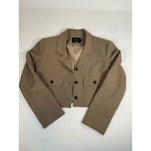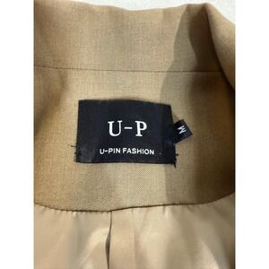 U-P Fashion Cropped Blazer Jacket Tan Two Button Utility Pockets Medium