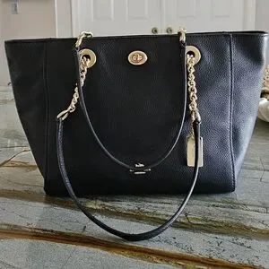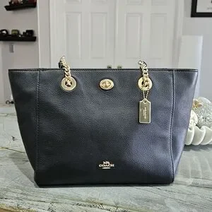 Coach Turn-Lock Chain Leather Tote Bag 2022