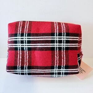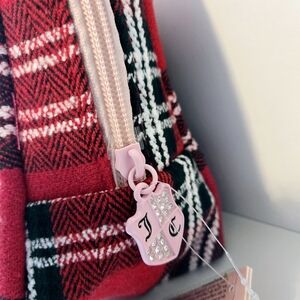 Juicy Couture Cosmetic Bag Red/Black Makeup Toiletry Bag Scottish Tartan Plaid.