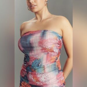 Anthropology Slim Strapless Ruched Mesh Dress