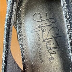 Shine with sophistication in these LK Bennett black glitter heels. Perfect for elevating any outfit with a touch of glamour.