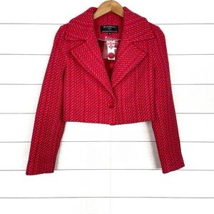 NWT Helene Berman Anthropologie Tweed Cropped Jacket Blazer Pink Medium New