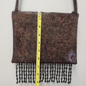Chic brown clutch with striking beaded fringe. Perfect for evening wear. Good used condition.