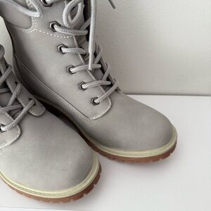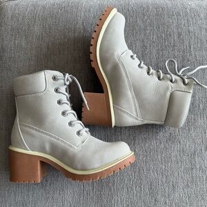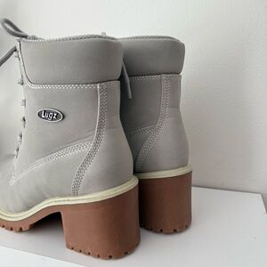 lugz womens gray heeled boots size 6.5 chunky heel lace up combat style lug sole