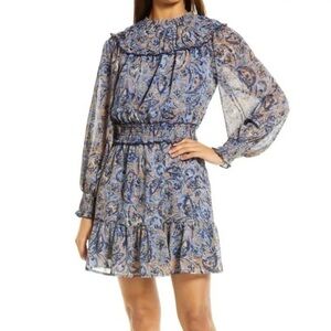 NWT BTFL-Life Blue Paisley Floral Ruffle Mini Dress Sz M