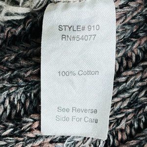 Stylish open front circle cardigan. Features a mix of gray and pink tones. Perfect for layering.