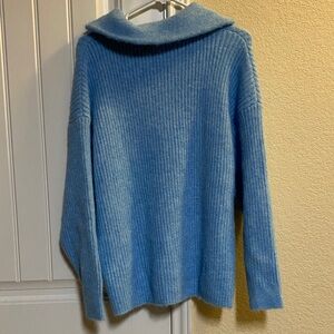 NWT- bought from a boutique and just never worn. Cozy baby blue ribbed sweater, qtr zip, size small.. but oversize and comfy.