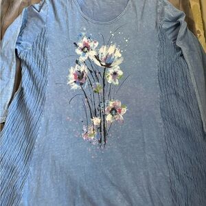 Jess & Jane Artsy Floral Tunic – Distressed Textured Fabric – 1X – Made in USA