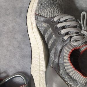 Adidas Ultraboost X Women’s Size 6 Grey Red Trim Knit Running Shoes, used in good condition. Look at the pics for more details. Any questions let me know please.