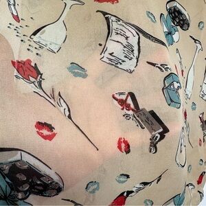 • Fun print featuring lipstick, roses, hearts, and kisses