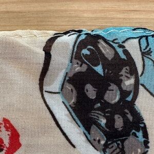 long viscose scarf, 100% viscose wrap, semi-sheer print scarf, lipstick rose print scarf, hearts kisses scarf, graphic motif scarf, neutral background accessory, red teal black accent scarf, headscarf long scarf women, necktie scarf wrap accessory, lightweight layering scarf, pre-loved fashion scarf, vintage look scarf, upcycled accessory, statement print wrap