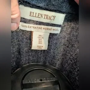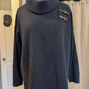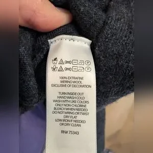 Extra fine merino wool. dark blue. super soft with beautiful leather accent.size large. no flaws in excellent condition.