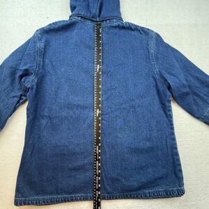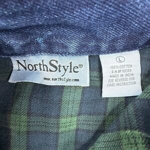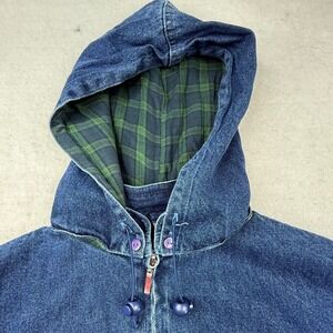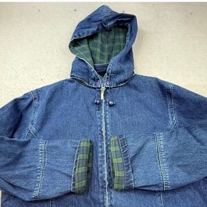 VTG North Style Denim Hooded Jacket Green Plaid Lined Zip Front Women Large